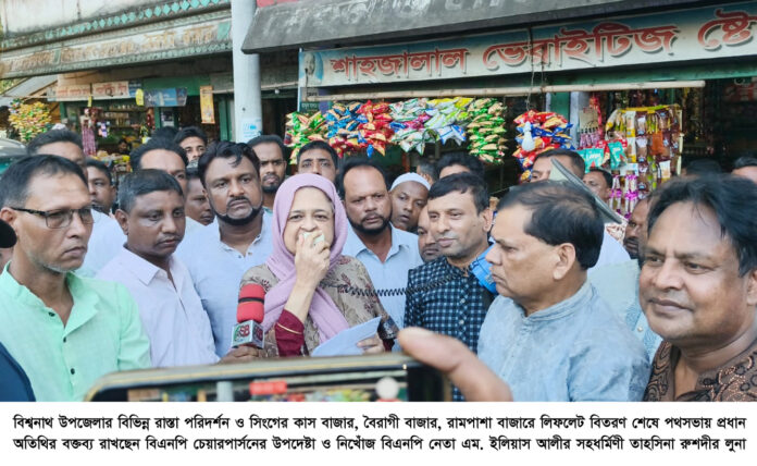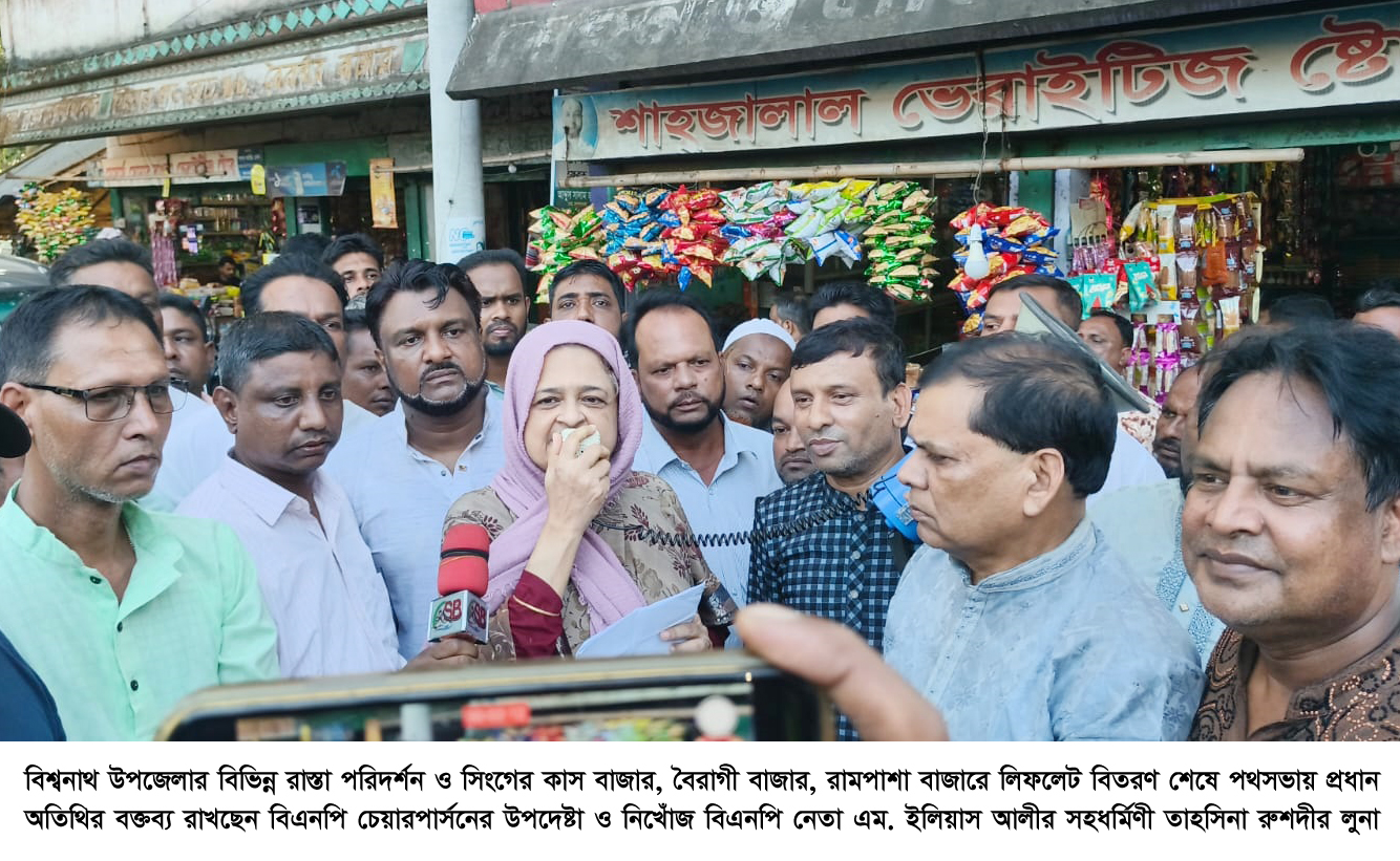 বৃহস্পতিবার (২৪ অক্টোবর) বিকেল ৩টায় বিশ্বনাথ উপজেলার বিভিন্ন রাস্তা পরিদর্শন ও সিংগের কাস বাজার, বৈরাগী বাজার, রামপাশা বাজারে লিফলেট বিতরণ শেষে পথসভায় প্রধান অতিথির বক্তব্যে তিনি উপরোক্ত কথাগুলো বলেন।