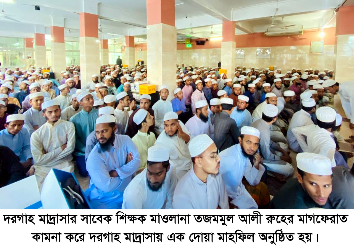 দরগাহ মাদ্রাসার সাবেক শিক্ষক মাওলানা তজমমুল আলী ইন্তেকাল করেছেন (ইন্নালিল্লাহি ওইন্না ইলাইহি রাজিউন)। গ্রামের বাড়িতে দাফন সম্পন্ন করা হয়। শনিবার (২২ নভেম্বর) তার রুহের মাগফেরাত কামনা করে দরগাহ মাদ্রাসায় এক দোয়া মাহফিল অনুষ্ঠিত হয়।